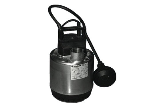 Per acque sporche. Motore monofase hp 0,4 kw assorbiti 0,35, bocca mandata 1"1/4, sommergibile, portatile, automatica con galleggiante incorporato, mantello esterno e albero acciaio inox Port/lt. m': 25 a mt. 7 - 50 a mt. 6,3 - 75 a mt. 5,4 - 100 a mt. 4,4 - 150 a mt. 2,2 .