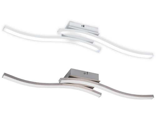 Plafoniera a 2 luci Led bianca, grado di protezione IP20. Struttura in plastica bianca e metallo, potenza 5 Watt â 2x600 lumen â 4000K. Dimensioni 56x9xH7 cm.. Metallo colore: Bianco opaco