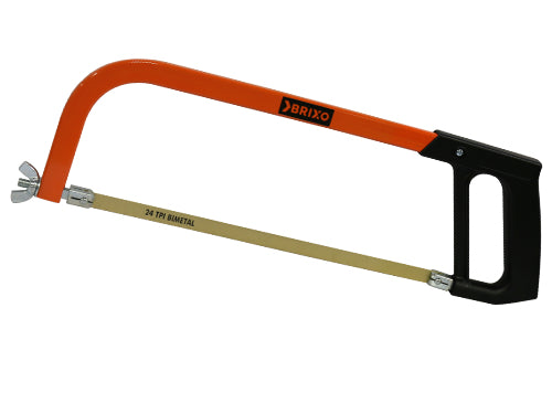 Archetto in acciaio verniciato, impugnatura in alluminio, lama bimetallica 300x13 mm., tendilama a galletto attacco quadro 12 mm., profilo rettangolare 18x10 mm..