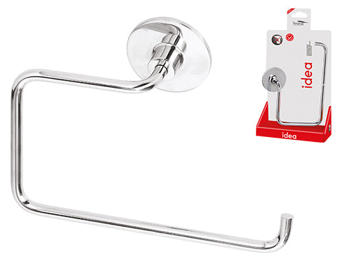 In acciaio cromato sagomato con doppia modalità di fissaggio: Adesivo - Viti.