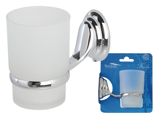 Portaspazzolino cromo/vetro satinato con piastrine in acciaio antiruggine.