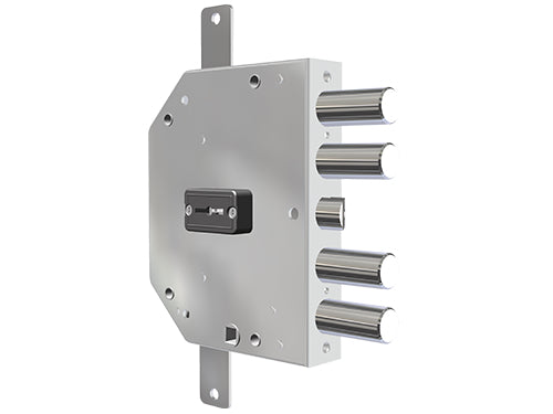 Doppia mappa, 3 punti di chiusura con scrocco, interasse 28, finitura zincata. Dispositivo NO Entry (Sistema di protezione concepito per opporsi ai più recenti metodi di apertura per manipolazione e rappresenta una vera barriera antintrusione). Dotazione 3 chiavi 116 mm. . 2155-13N - Mano sinistra