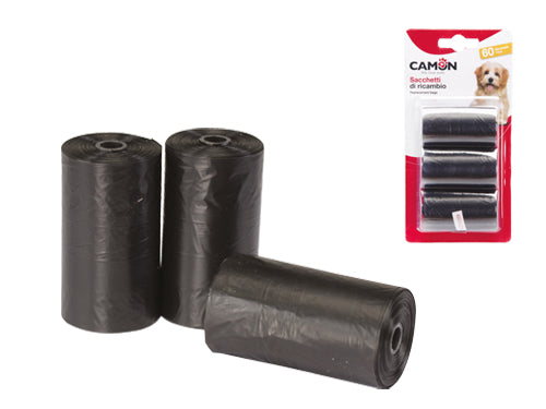 Sacchetti di ricambio color nero. Blister 3 rotoli - Totale 60 sacchetti.
