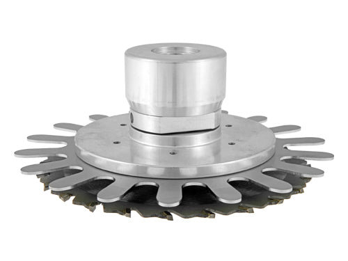 Disco à 150 mm., universale per taglio di polloni che si sviluppano ai piedi degli alberi dal tronco e dalle radici in prossimità del fusto. Salva-corteccia, disco di contrasto sagomato, installato coassialmente al disco da taglio ma senza essere vincolato alla rotazione del medesimo..