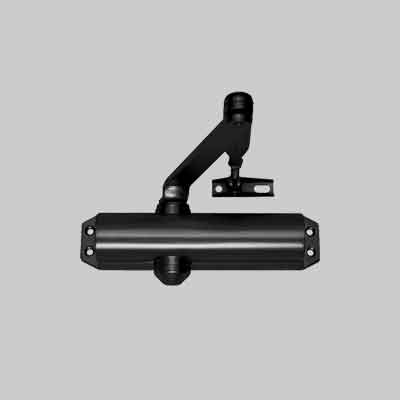 Meccanismo a pignone e cremagliera con braccio a compasso. Velocità di chiusura, colpo finale e ammortizzazione in apertura regolabili tramite valvole di regolazione. Valvole indipendenti e termodinamiche per garantire una performance costante nelle diverse condizioni di temperatura. Forza variabile di chiusura EN 2/3/4 secondo la norma EN 1154. Per porte a battente fino a 1100 mm di larghezza, utilizzabile su porte destre e sinistre, adatto anche per porte tagliafuoco e tagliafumo. Colore nero RAL9005.