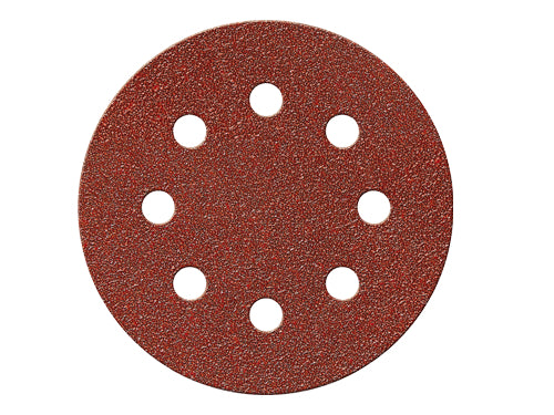 Supporto carta + velcro à 125 mm. - 8 Fori; Peso 185-225 g/mq.; Adesivo resina; Abrasivo corindone; Utlizzo universale.. Grana 80 - Cf. 50 Pz.