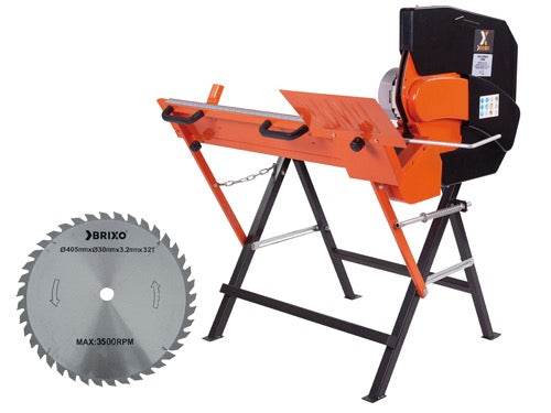 Potenza 1500 Watt - 230V/50Hz, capacità di taglio Ã30-135 mm., dimensione lama 400x30x2,5 mm.. Sega Tronchi