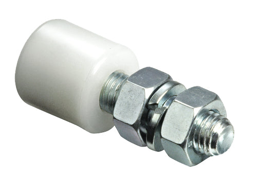 A sezione cilindrica in nylon, con perno filettato con 2 dadi . Ã 30 mm. - Altezza 30 mm.