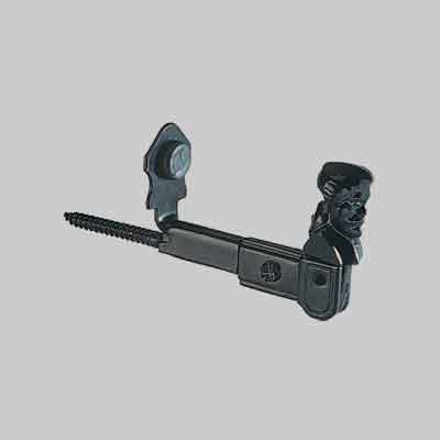 Fisso con fermo battuta. In lega verniciata colore nero. Con vite completo di tassello.