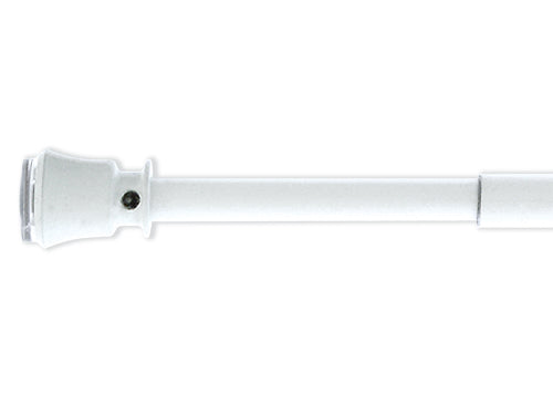 In acciaio plastificato bianco a sezione tonda à 8 mm. Con terminali bianchi + ventosa + molla + rampini. Confezione 2 pezzi in busta con cavaliere.. Estensibile 50-60 cm.