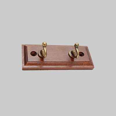 In legno color noce con ganci in metallo.