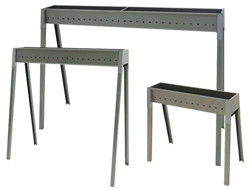 In acciaio alluminato con sistema mono-parete (Grazie al sistema di mono-parete e al doppio fondo il prodotto mantiene una buona circolazione dell'aria sotto la brace). Montaggio/Smontaggio delle gambe con sistema di innesto a baionetta. Togliendo le gambe può essere utilizzato sopra a strutture di pietra esterne o interne, tipo il camino. Torino 100: 100x32xH79 cm. - Braciere 100x11 cm.