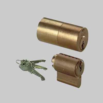 Corpo e cilindretto in ottone. Cinque perni in ottone. Controperni in ottone cilindrici e a fungo antigrimaldello. Molle in bronzo fosforoso. In dotazione tre chiavi e viti di fissaggio. Per serrature serie 1A631, 1A721 e 1A731.