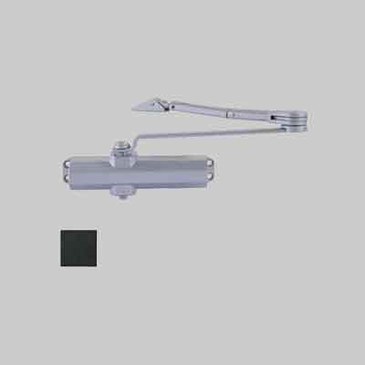 Forza EN 2/3. Può essere installato su qualunque tipo di porta, con peso fino a 80Kg e larghezza 950 mm. Velocità di chiusura regolabile, richiusura, chiusura silenziosa. Apertura: 180°. Adatto a porte tagliafuoco e tagliafumo. Braccio a compasso. Colore Nero RAL9005.