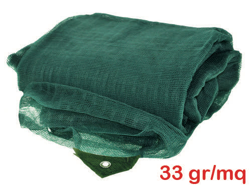 Tessuto antispina, monofili di polietilene peso medio 33 gr/mq., stabilizzato raggi U.V., angolari rinforzati con tassello occhiellato, colore verde. Mt. 8x8 - Intera