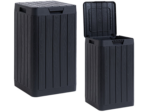 Contenitore in resina inalterabile, resistente al gelo e alle intemperie ed ai raggi UV, maniglie e porta sacco, chiusura a scatto. Dimensioni 38x38xH65 cm. - 80 Lt. .