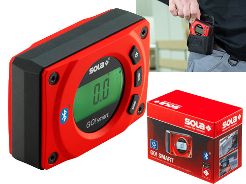 Livella digitale in poliammide rinforzato in fibra di vetro. Unico strumento: bolla di livellamento, misurazione dell'inclinazione e goniometro. Interfaccia Bluetooth per utilizzare l'app SOLA Measures. Visualizzazione reversibile in caso di misurazioni capovolte. Misurazione orizzontale/verticale/angoli/inclinazione. Display illuminato e piano di appoggio magnetico con scanalatura a V. Dimensioni 8x5,5x3 cm. Alimentazione elettrica: Batteria 1 x 1.5 V (AA) (incluse) Classe di protezione: IP52.