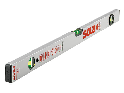 Corpo in profilato di alluminio anodizzato - color argento - dimensioni 49x21 mm. ca. - peso del profilo 520 gr/metro lineare - 1 fiala orizzontale - 1 fiala a piombo - fiale controllate elettronicamente. Goniometro a regolazione variabile in gradi° e percentuale% - lunghezza cm. 60; Migliore leggibilità in caso di scarsa luminosità grazie ad un rivestimento fluorescente. fiala a blocco in vetro acrilico infrangibile con lente di ingrandimento (+20 %), tappi finali assorbi urto. Tolleranza di misurazione precisione posizione standard :0,50 mm/m - in posizione capovolta 1,0 mm/mt..