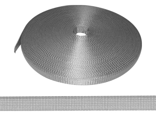 In polipropilene HT adatto per monoblocco, colore grigio. Spessore 1,2 mm. - Larghezza 18 mm. - Rotolo 50 mt. .
