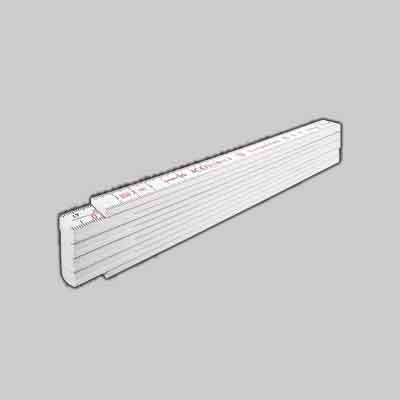 Metro in abs bianco. 2m/10 pieghe graduate con rivetti.