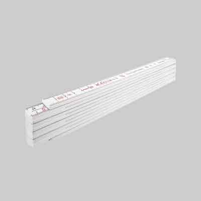 In fibra di vetro bianco. Graduazione incisa, snodi con doppia molla antiusura, scatto a 90°. Non conduttore, lavabile.