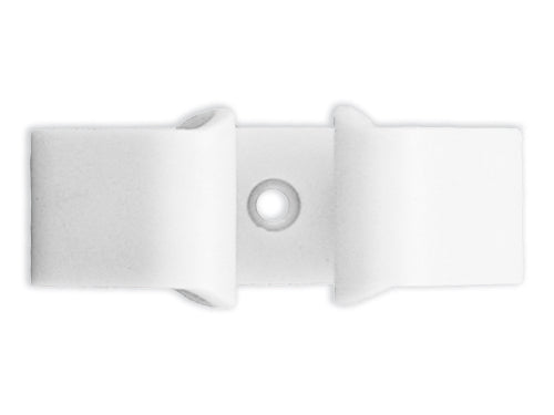 In plastica, autoadesivo con foro per vite e tassello. Colore bianco.