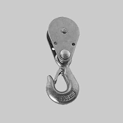 Installata sulla fune e ancorando il gancio al telaio dell'elevatore, si dimezzano velocità ed altezza di sollevamento, ma si raddoppia la portata.