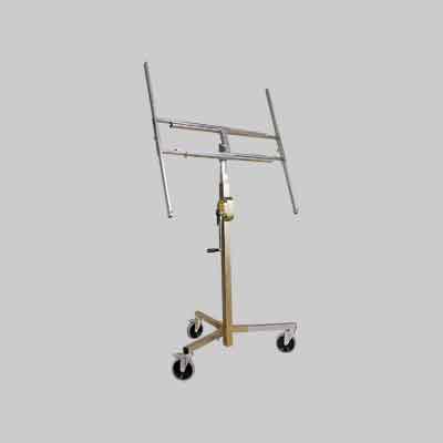 Semplice, agile e facile da usare, ideale per sollevare e posare lastre in cartongesso su controsoffitti piani e inclinati. Si allunga, si inclina, si monta e si smonta rapidamente. Montato passa attraverso tutte le porte standard, smontato stà comodamente nel portabagagli dell'auto. Può essere caricato e azionato da una sola persona. Il piano di appoggio per la lastra di cartongesso è dotato di perni ferma lastra posti sui quattro angoli. Questi perni essendo retrattili consentono un'accostamento "a filo perfetto" e "meccanico" della lastra a soffitto evitando così che debba essere sospinta e bloccata a mano prima di essere fissata con le viti. N° max lastre cartongesso posizionabili: 1. Carico max. applicabile: 50 kg. Altezza operativa max. a soffitto (orizzontale): 4,00 m. Altezza operativa max. a parete (verticale): 4,50 m. Peso: 33 Kg.