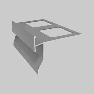 In alluminio. Protegge i bordi di balconi e terrazze costantemente esposti alle intemperie. La sua forma permette di incanalare l'acqua lontano dal muro, evitando la corrosione della facciata. Composta da fori ad asola per l'evacuazione di eventuale acqua filtrata sotto la pistrella.