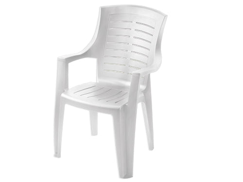 Sedia in resina colore bianco. Dimensioni 55x60xH91 cm..