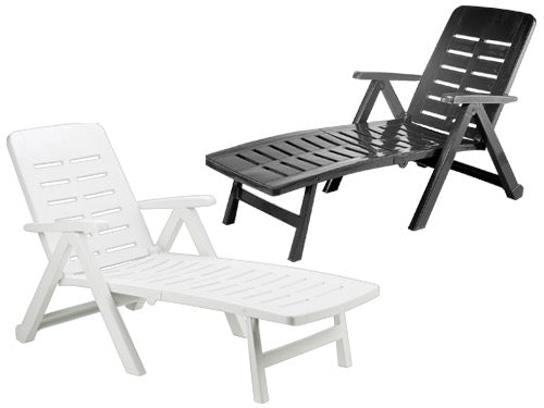 Struttura pieghevole in resina, schienale reclinabile, resistente agli agenti atmosferici. Dimensioni 189x72xH96 cm.. Colore Antracite