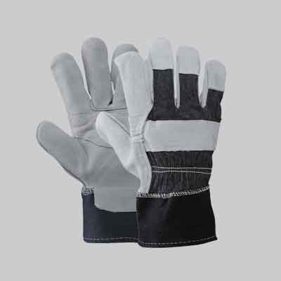 Palmo in crosta rinforzato, dorso in tela jeans, manichetta di sicurezza tela di cotone orlata, interamente foderato sul palmo, elastico interno stringipolso. Indicato per la manipolazione di casse, cartoni, operazioni di carico e scarico, manutenzioni generiche.