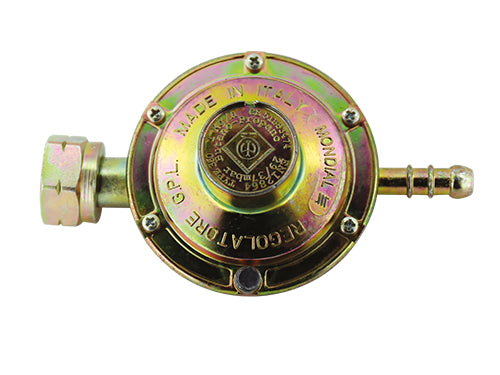 Per GPL, a bassa pressione, attacco orizzontale, pressione 29mbar per il butano, 37mbar per il propano, capacità 1 kg/ora. Omologato IMQ EN 12864.