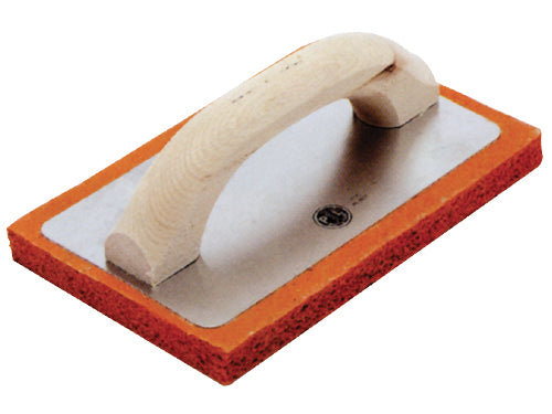 Per intonaci tradizionali, cellula grande. Spugna arancio semicompatta spessore 20 mm. su base in alluminio, con impugnatura legno. 10x24 cm.