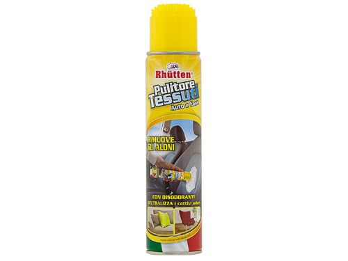 Schiuma attiva con spazzola, penetra allâinterno delle fibre, facilitando lâasportazione dello sporco e ravvivando i colori dei tessuti trattati, azione disodorante contro i cattivi odori, per la pulizia di qualsiasi tipo di tessuto: interni dâauto e casa (sedili, moquette, divani, poltrone, tappeti) Rilascia un gradevole profumo igienizzando le superfici trattate. Spray 400 ml..