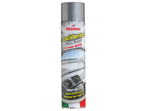 Pulisce e lucida i cruscotti in plastica, gomma, similpelle, idrorepellente e lubrificante, ravviva i colori e rinnova le superfici, azione antistatica, lascia sulle superfici uno scudo difensivo contro i raggi UV che ne previene l'invecchiamento. Ideale anche su borse, valigie, scarponi, bauletti moto e nel settore nautico. Spray 600 ml..