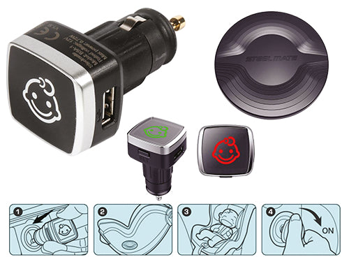 Dispositivo Wireless da inserire nellâaccendisigari composto da un display/allarme acustico ( Livello di allarme 70/90 db) e visivo e di un Pad di rilevamento da inserire sotto il cuscino del seggiolino. Il sistema avviserà immediatamente il conducente che ha un bambino nel seggiolino quando l'accensione è disattivata. Presa USB 2A sul display per ricaricare altri apparecchi. .