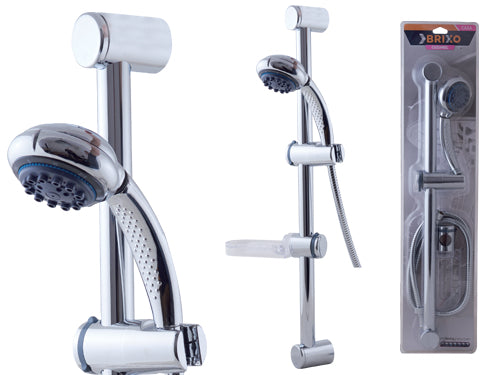 Saliscendi regolabile 65 cm. con doccia idromassaggio multiposizioni in ABS cromato, munito di portasapone e flessibile ottone cromato da 150 cm..