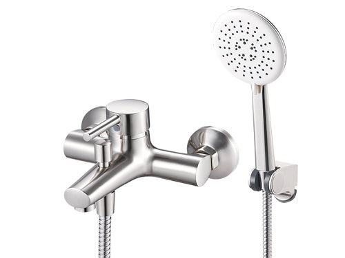 Corpo in ottone, impugnatura in zinco, superficie Nikel Brush, cartuccia in ceramica à 40 mm. Set contenente Miscelatore monocomando - Doccia con getto regolabile.