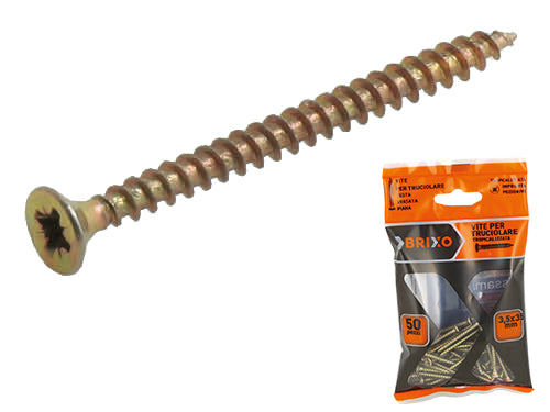 Vite zincata gialla a testa svasata piana per truciolare, interamente filettata con impronta pozidrive. . Ã 3,5x35 mm. - Conf. 50 pz.