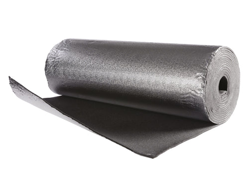 Poliuretano espanso a cellule aperte, autoestinguente, accoppiato ad un foglio di alluminio bucciato resistente ad altissime temperature. Rotolo 10 mt. - Altezza 100 cm..