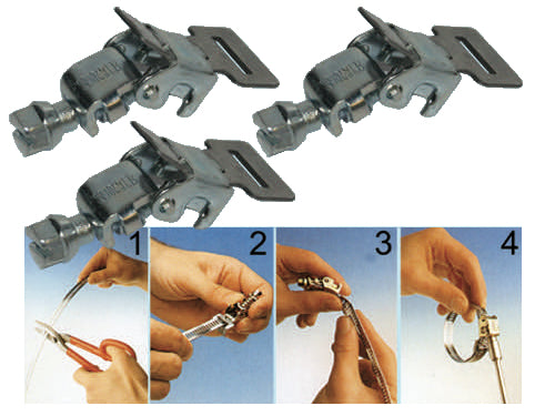 Ganci per fascette stringitubo con cassetto ribaltabile e vite di bloccaggio. Confezione 50 pezzi. FRBG 25-12/50 - Per banda 12 mm.