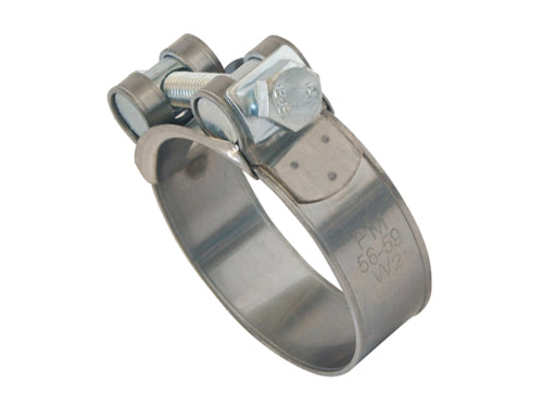 Banda e ponte inox AISI 430, vite TE e cilindri filettati cl.8.8 zincatura bianca. Utilizzabile in ambienti aggressivi, eccellente tenuta, per medie ed alte pressioni. Tubo Ã48-51 mm. - Bullone M8