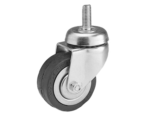 Supporto in acciaio stampato cromato rotante su doppia corona di sfere, con gomma nera. Perno con filetto 8 MA da 30 mm.. Ã 40 mm. - HL 62 mm. - Portata max kg. 20