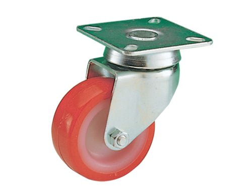 Con piastra, ruota in nylon bianco rivestito di poliuretano rosso. Ã 50 mm. - Portata max kg. 25