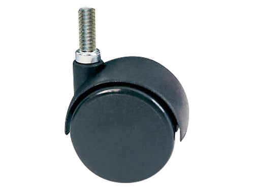 Ruote piroettanti per mobili doppia in nylon, supporto nero cromato. Per Art. 528 - 533 perno 8 MA x 25 mm.; Per Art. 535 perno 10 MA x 10 mm.. Art. 528 - Ã 30 mm. - Portata kg. 25