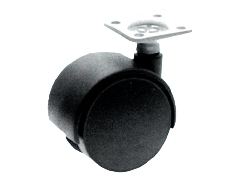 Ruote piroettanti per mobili doppia in nylon, supporto nero cromato. Per Art. 529 - 534 piastra 28x28 mm.; Per Art. 536 piastra 36x36 mm.. Art. 529 - Ã 30 mm. - portata kg. 25