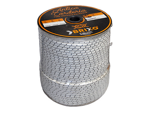 In poliestere tipo marino, confezionata in bobine su supporto. Pesi e lunghezze dei rotoli di seguito elencati si intendono approssimativi. Per ciascuna misura è indicato il carico di rottura espresso in Kg (C/R), inteso in trazione verticale.. à 10 mm. - 220 mt. - C/R kg. 800 ca.