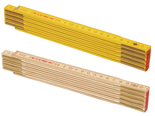 In faggio naturale, scala graduata mm, bifacciale, verniciatura anti.UV, cerniere ottonate. Misura 2 mt - 10 stecche - Precisione EG-III. Naturale