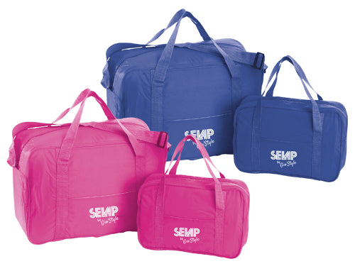 Capacità 25 Lt. + 7 Lt. In poliestere 70 D, isolamento di 2 mm. di spessore in schiuma di polietilene alta densità . Disponibile in 2 colori assortiti fucsia, blu 25 Lt.: 40,5x19xH28 cm. - 7 Lt.: 29x11xH19 cm..